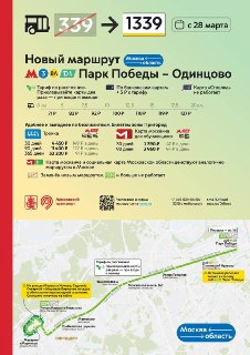 🚌 С 28 марта запускается новый маршрут 1339 от метро «Парк Победы» в Одинцово